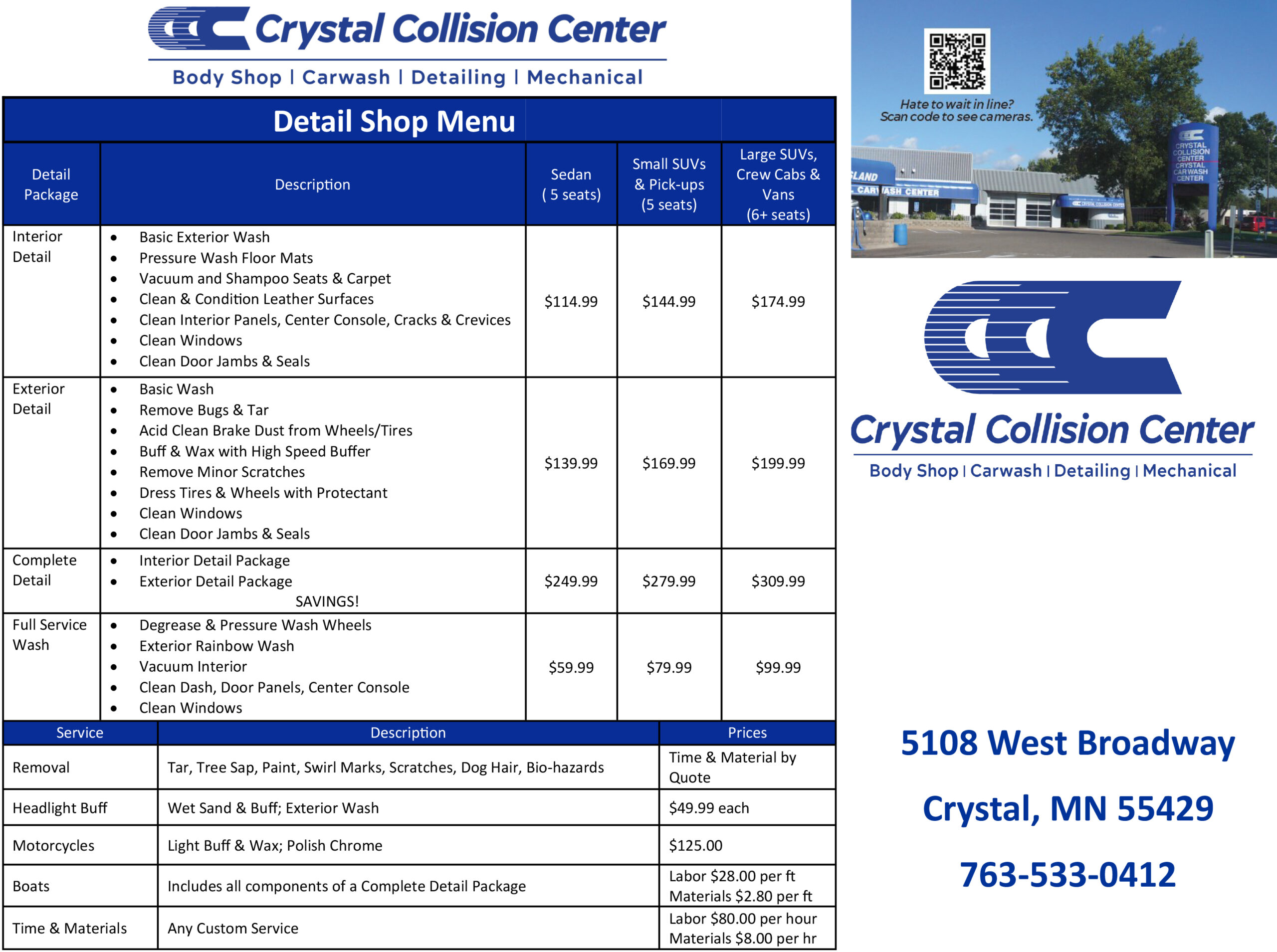 As a trusted auto body shop in Crystal, MN, Crystal Collision Center can deliver high quality interior and exterior detailing services for your automobile. We use only the best products and techniques to ensure that your vehicle receives the highest level of care.