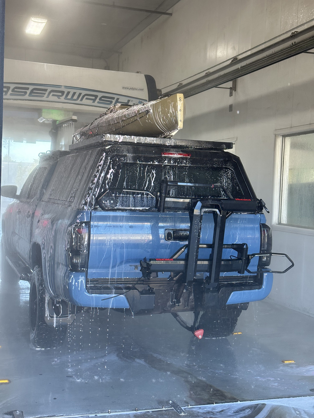 Pick-up Truck with Canoe taking a wash